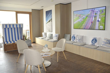 Noch nicht auf der Insel, aber schon am Ziel – das ist kein Widerspruch, sondern die als „Welcome-Center“ bekannte, neue „Tourist-Information Langeoog in Bensersiel“. Der attraktive Wartebereich im Fährhaus Bensersiel, mit Strandkörben und Dünengras im Insel-Ambiente gehalten, verkürzt die Zeit bis zur Abfahrt der nächsten Fähre. Informiert und unterhalten werden hier alle Langeoog-Gäste – und solche, die es werden wollen.