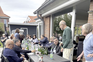 Über die ehemalige Seenotbeobachtungsstation ging es dann weiter in Richtung der Straße Am Teich. Hier wartete ein gemütlicher Empfang im Haus von Andrea und Rüdiger Babatz, Vorsitzender des Freundekreises und „Teilzeitinsulaner“, auf die durchgewehte Gruppe. Bei leckerem Eintopf und Getränken wärmten sie sich auf, bevor es über die Höhenpromenade zurück zum Bahnhof und schließlich zur Fähre ging.